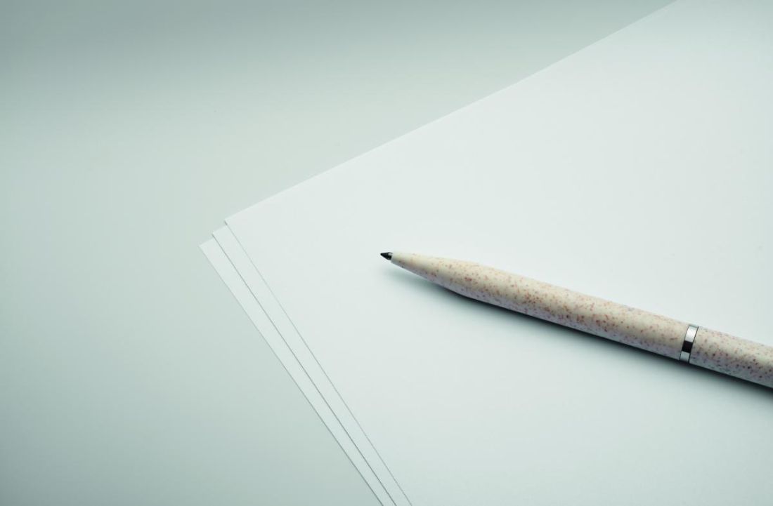 Set de bolígrafos de paja de trigo/ABS con 1 bolígrafo giratorio de tinta azul y 1 bolígrafo giratorio de grafito sin tinta. Presentado en caja de …