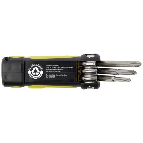 Juego compacto de destornilladores 8 en 1 con linterna fabricado con un 20 % de plástico reciclado con certificación RCS. La norma RCS (Recycled Claim Standard) verifica el contenido reciclado de...