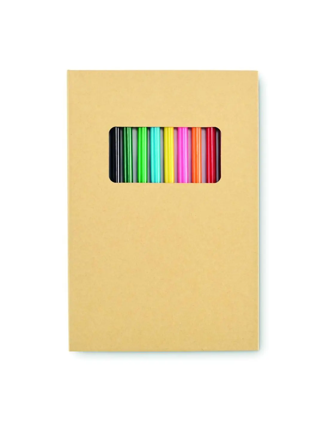 Set de dibujo infantil con 50 hojas de papel reciclado y 12 lápices de colores de madera. Con cubierta de papel kraft.