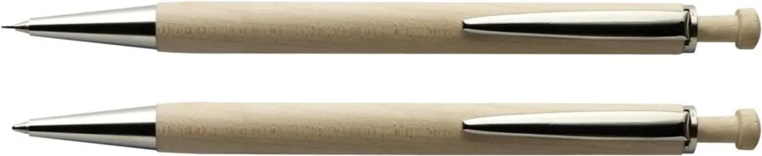 Set de bolígrafo y portaminas de madera. Clip de metal y tinta azul. Presentados en un estuche a juego.