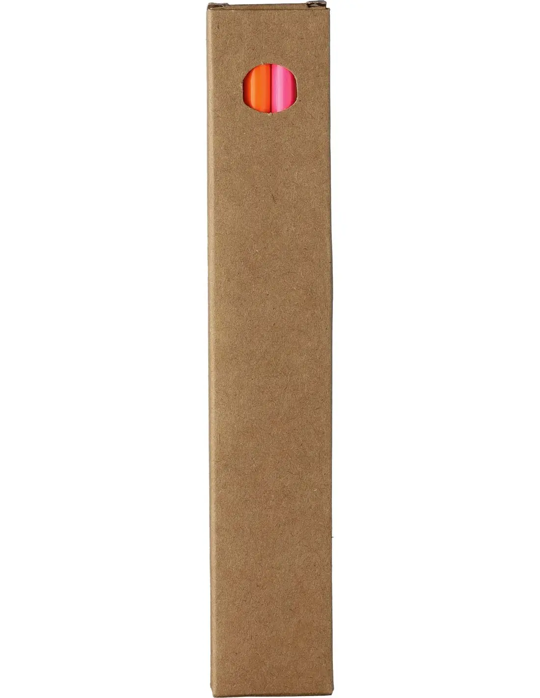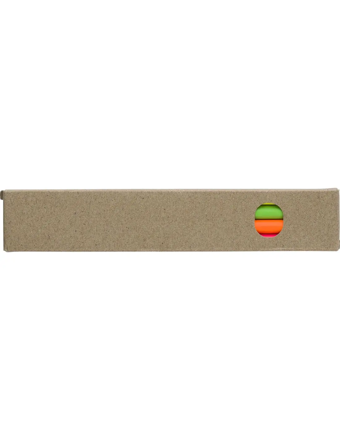 Juego de 4 lápices marcadores fluor de madera (amarillo, naranja, rosa y verde) presentados en una caja de papel. La alternativa ECO a los marcadores.