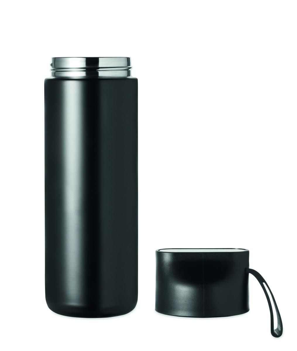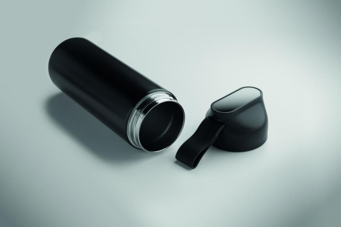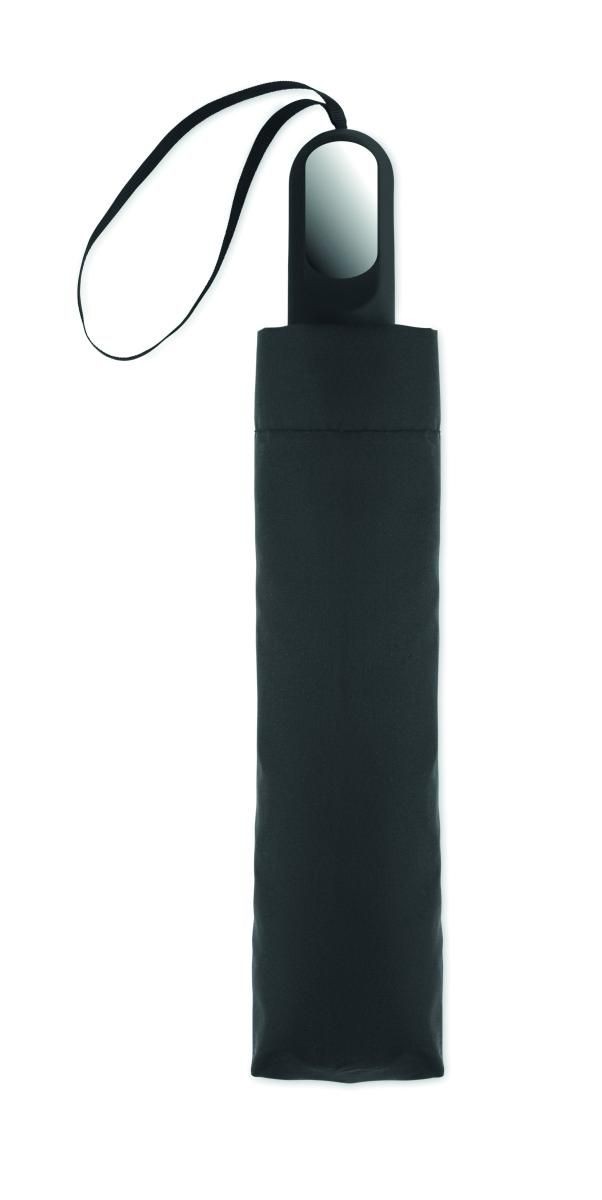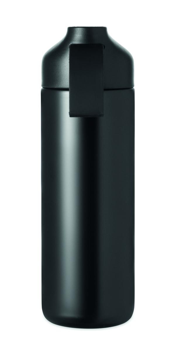Set de regalo 2 piezas: botella de acero inox. reciclado de doble pared 600ml y tapa de PP, detalle metálico y asa de silicona más paraguas plegabl…