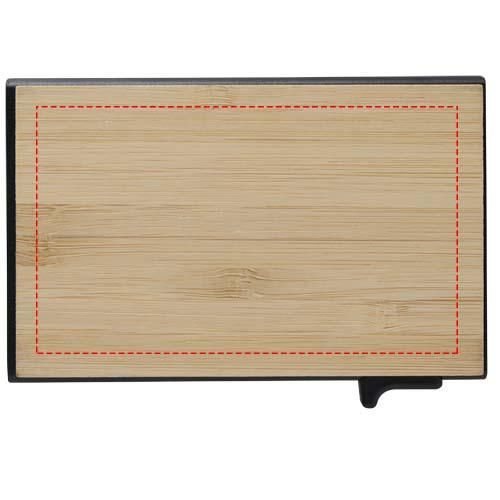 El set de regalo incluye un bolígrafo de aluminio reciclado con certificación RCS, una elegante empuñadura de bambú y punta de stylus, un llavero de aluminio (5,5 × 1,8 × 1 cm) con detalles de bambú y un soporte para teléfono integrado, así como un tarjetero RFID (9,7 × 6,2 × 1 cm) con cuerpo de aleación de aluminio y detalles de bambú, que ofrece protección para hasta 10 tarjetas. El bolígrafo contiene tinta negra, con una longitud de escritura de 1000 metros. Un regalo práctico y bien pensado que combina funcionalidad con un diseño moderno. Se entrega en una caja de regalo negra de primera calidad (16 × 16 × 2,7 cm) con una parte frontal lisa, ideal para añadir un logotipo.