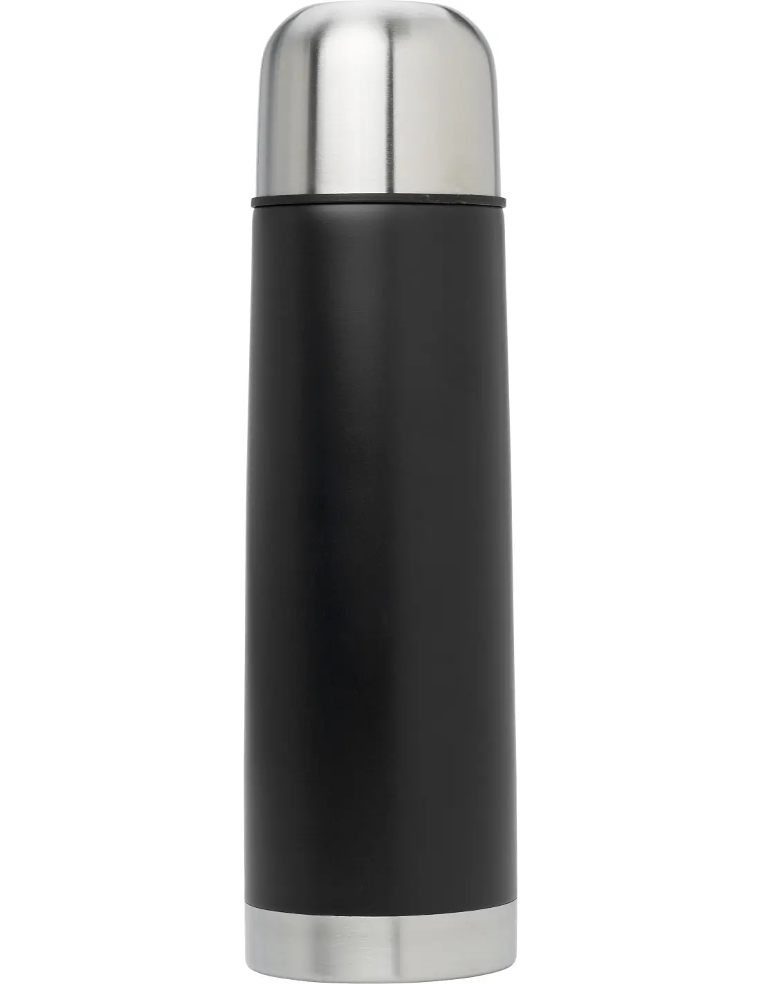 Termo con doble pared (500 ml) y 2 tazas (300 ml) de acero inoxidable con detalles de plástico. Presentado en una caja regalo color negra.