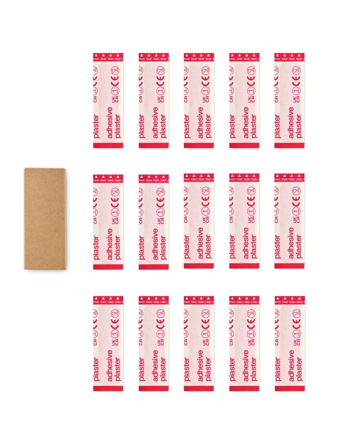 Set de 15 tiras adhesivas en caja de papel reciclado. No disponible para la venta en Suiza.
