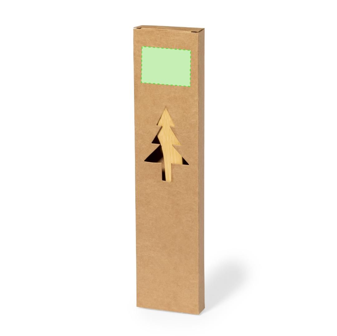 Original set de cocina con motivos navideños troquelados. Incluye cuchara y paleta fabricadas en bambú pulido. Presentación en caja individual de diseño kraft