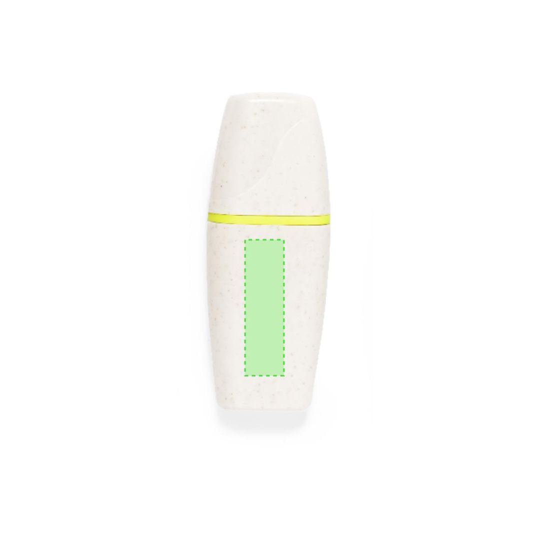 Original y práctico set de marcadores fluorescentes fabricados en caña de trigo y ABS. Incluye tres colores: amarillo, verde y rosa fluorescente. Presentados en bote con cuerpo transparente y tapa blanca a rosca, con superficie lisa para marcaje.La caña de trigo fomenta la utilización de materias primas naturales, reduciendo así las emisiones contaminantes.