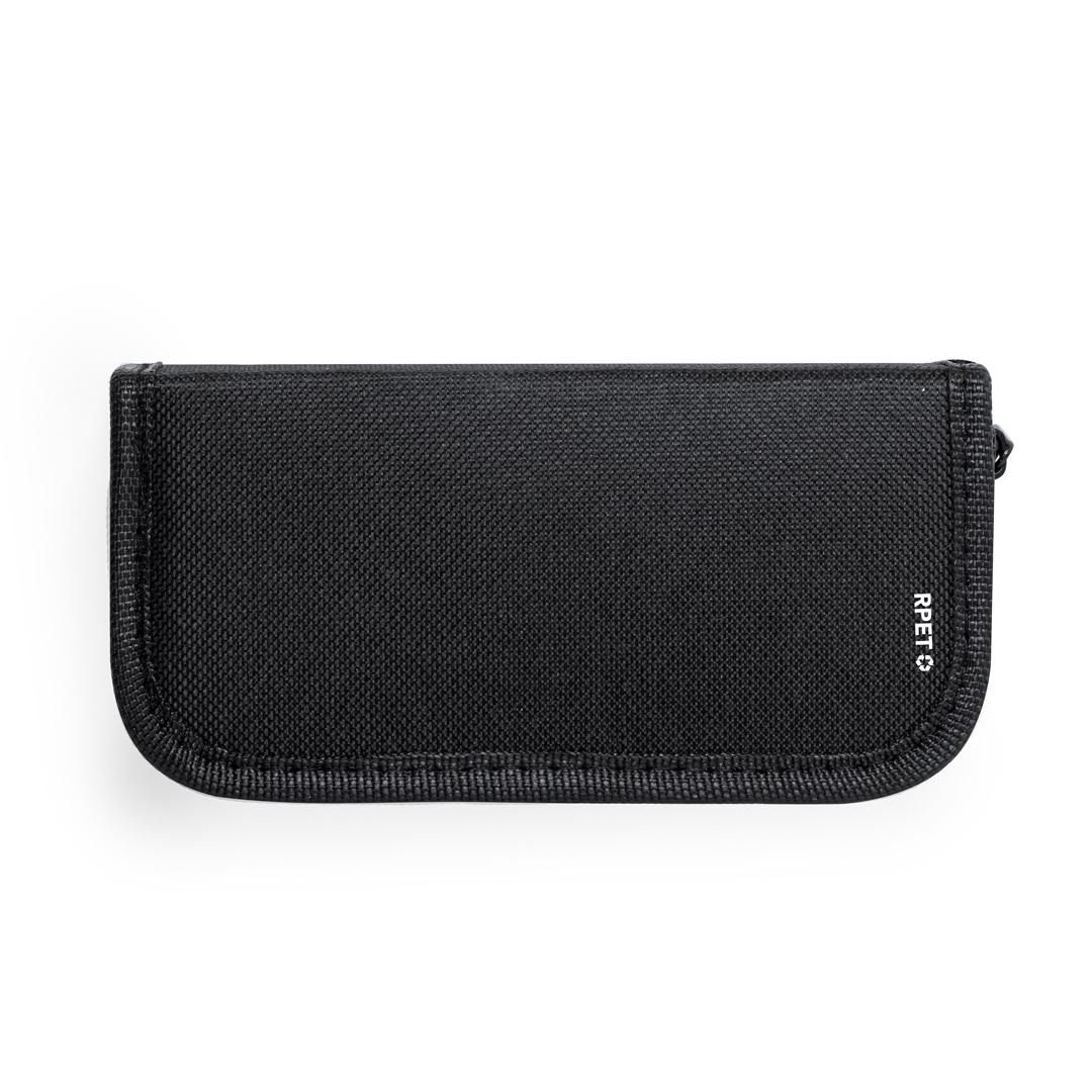 Práctico set para limpiar calzado en estuche de RPET. Completo paquete para limpiar calzado con dos cepillos de suaves cerdas, calzador, lata con cera y paño para que brille todo el calzado. Presentado en un práctico estuche con cierre de cremallera y elásticos para tener organizados todos los utensilios. Con logotipo RPET en la funda. El material RPET se elabora a partir de plástico reciclado, para así fomentar la reutilización de residuos plásticos y ayudar a la sostenibilidad del planeta.