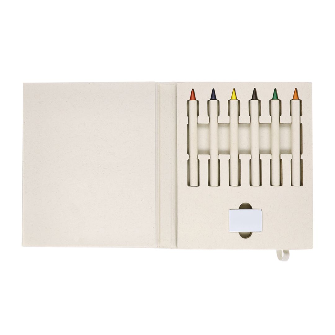 Set de lápices de colores eternos, fabricado con Cartones de Leche Reciclados. Incluye 6 diferentes colores, goma de borrar y bloc de notas con 50...
