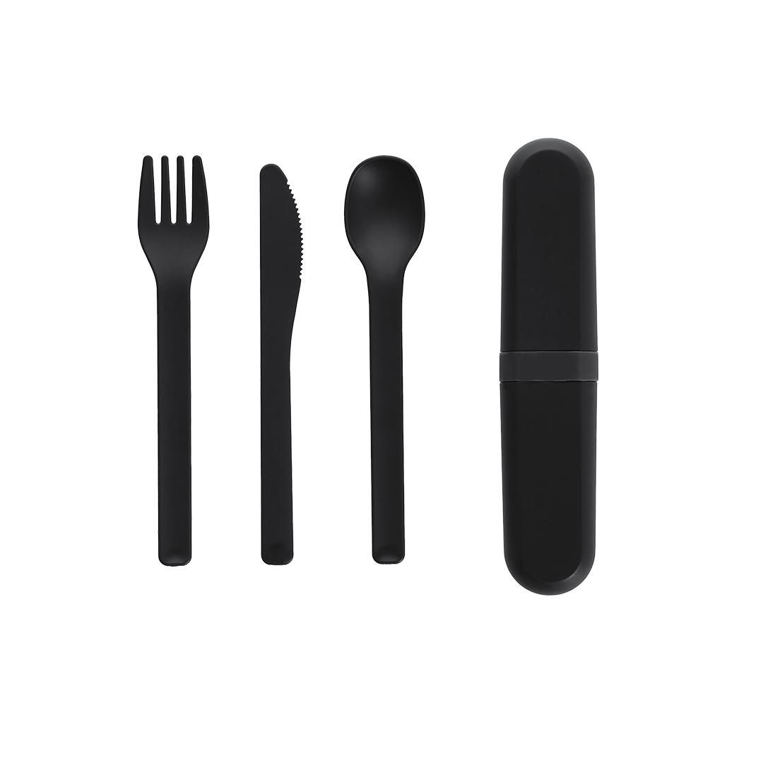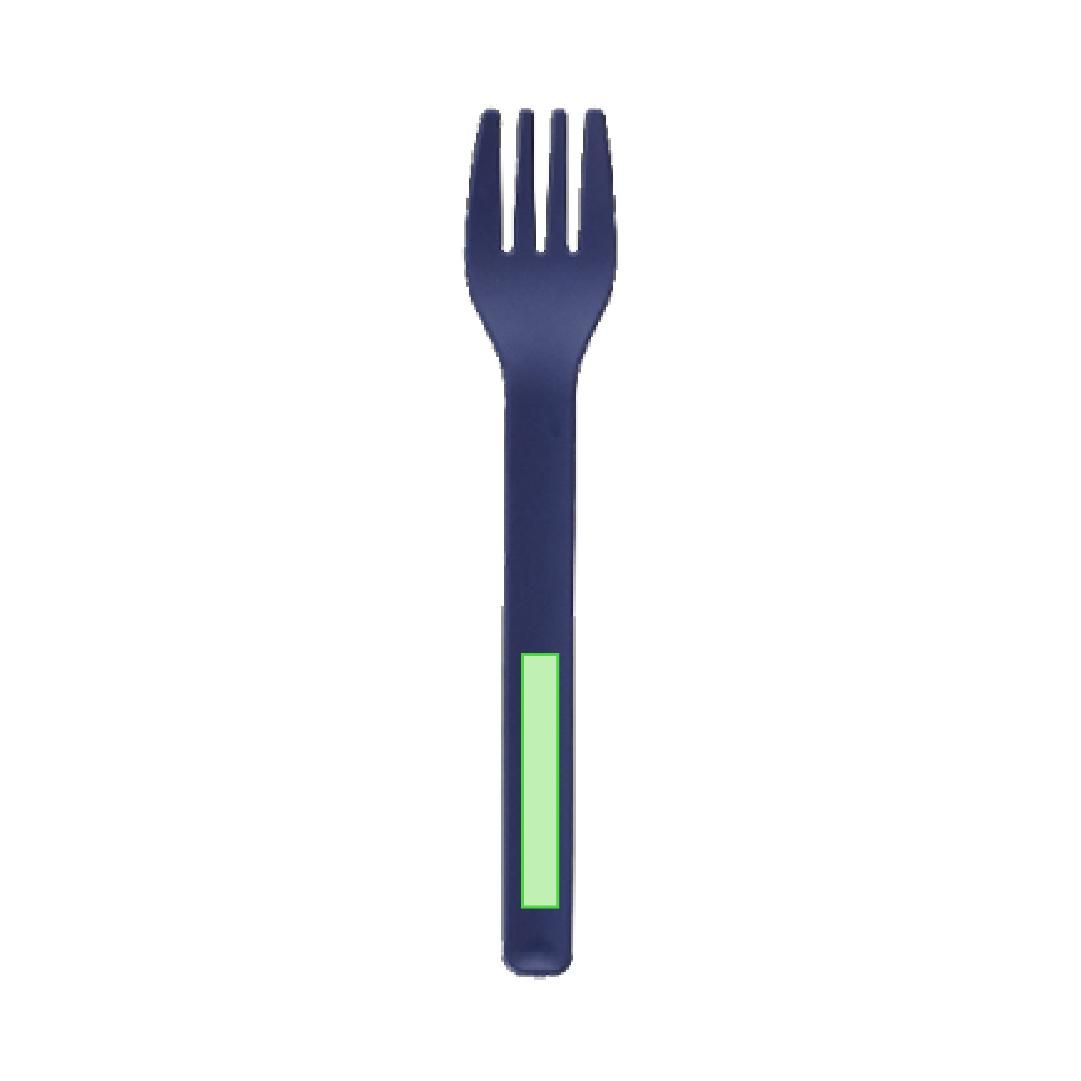 Set de cubiertos elaborados en PLA, en estuche de presentación a juego. El estuche cuenta con sistema de cierre push para mayor seguridad. Este completo set incluye cuchara, tenedor y cuchillo.