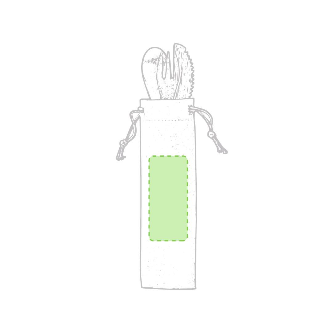 Set de 3 cubiertos de línea nature. Fabricados en bambú, incluye tenedor, cuchara y cuchillo. Presentados en funda de algodón con cordón auto cierre.