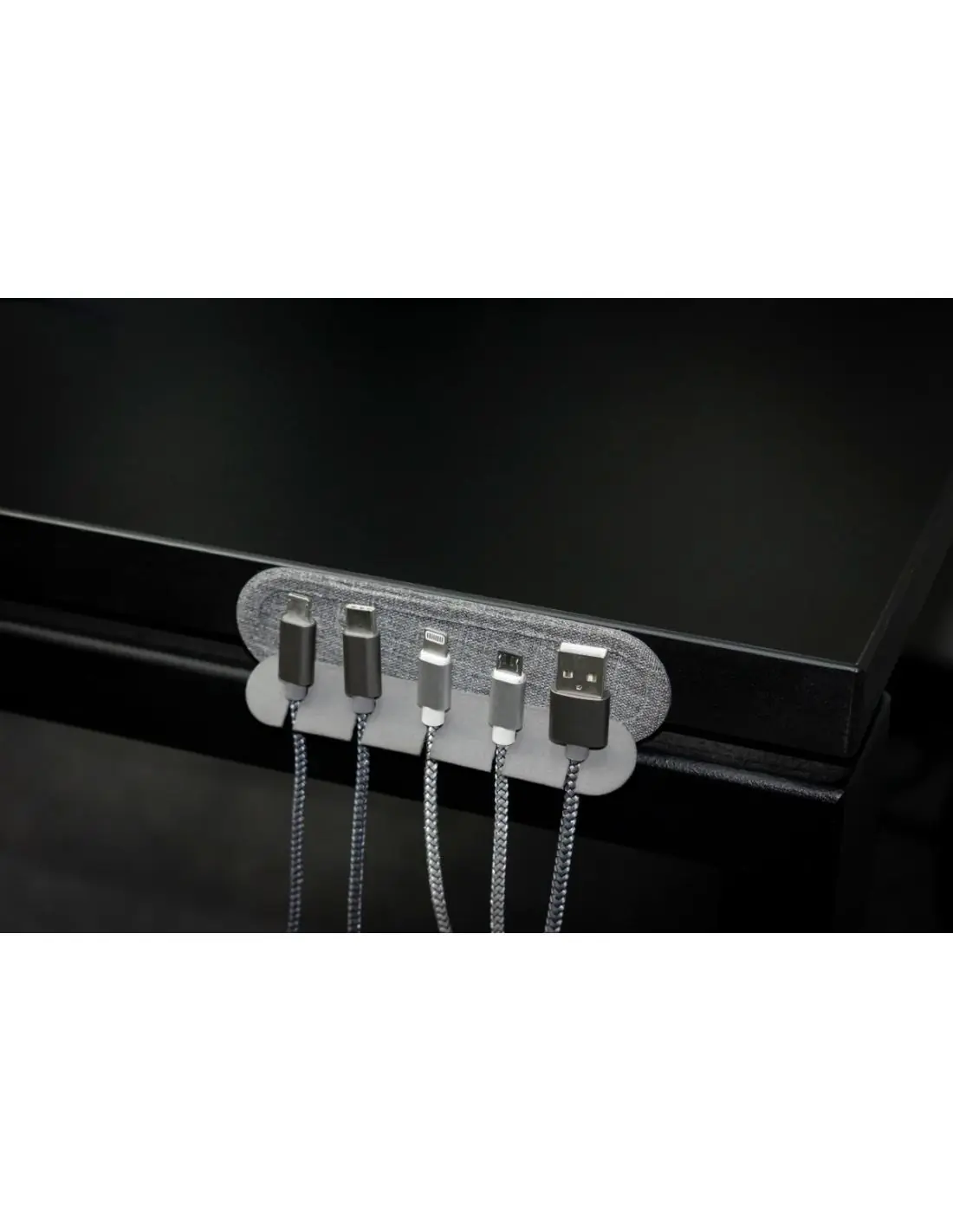 ¡Organiza tus cables sin esfuerzo con el soporte Cabledock Eco! Si los cables desordenados alrededor de tu escritorio, TV, computadora o teléfono son una molestia, Cabledock ofrece una solución simple. Con 5 ranuras para cables de hasta 6 mm, es compatible con todos los cables de carga y periféricos. Plegable y con respaldo adhesivo para una fácil colocación.