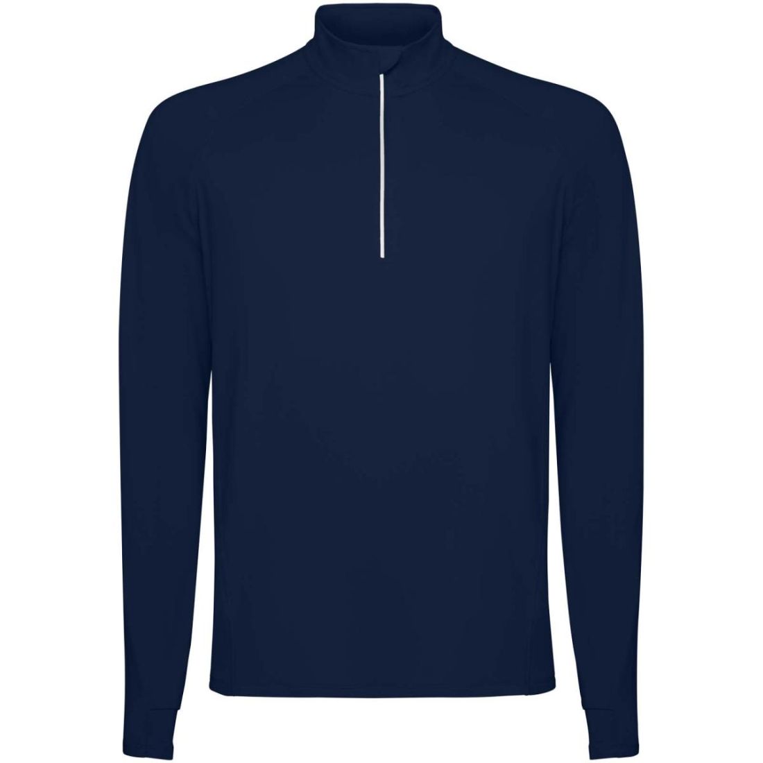 Sudadera técnica de manga larga raglán para hombre. Cuello con diseño invertido de media cremallera con elementos reflectantes. Cubiertas de costuras reforzadas. Puños con aberturas para el pulgar. Elementos reflectantes en la espalda. Dobladillo trasero ligeramente más largo que el delantero. Cálido tejido interior cepillado.