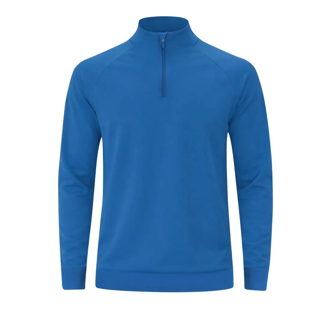 Sudadera técnica confeccionada con interior brushed perchado que aporta calidez y suavidad. Con manga ranglán y cuello con media cremallera y cubrecosturas de refuerzo a tono. Parte posterior del cuello, puños y bajo, confeccionados en canalé 1x1 para un ajuste cómodo. Incluye costuras laterales.
