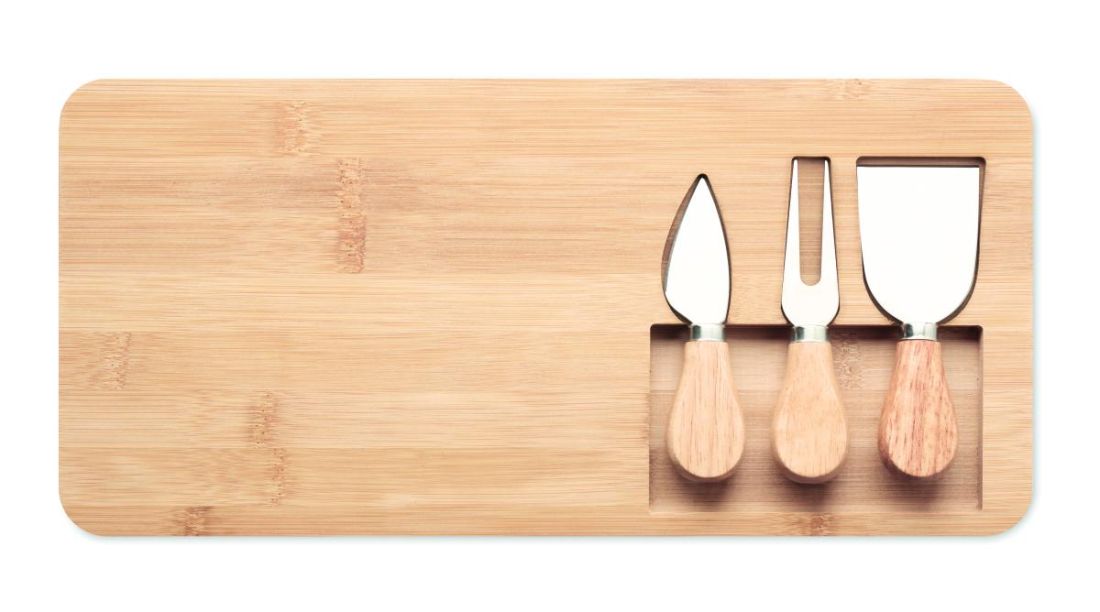 Tabla de bambú para cortar o servir. Incluye 2 cuchillos y un tenedor. FSC®-certified | FSC 100%, N5.7, FSC-C213206