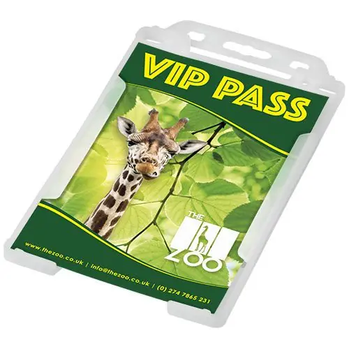 Tarjetero horizontal fabricado con plástico reciclado. Ideal para exposiciones, lugares de trabajo y eventos de networking. Adecuado para pases de tamaño de tarjeta de visita estándar y de tarjeta...