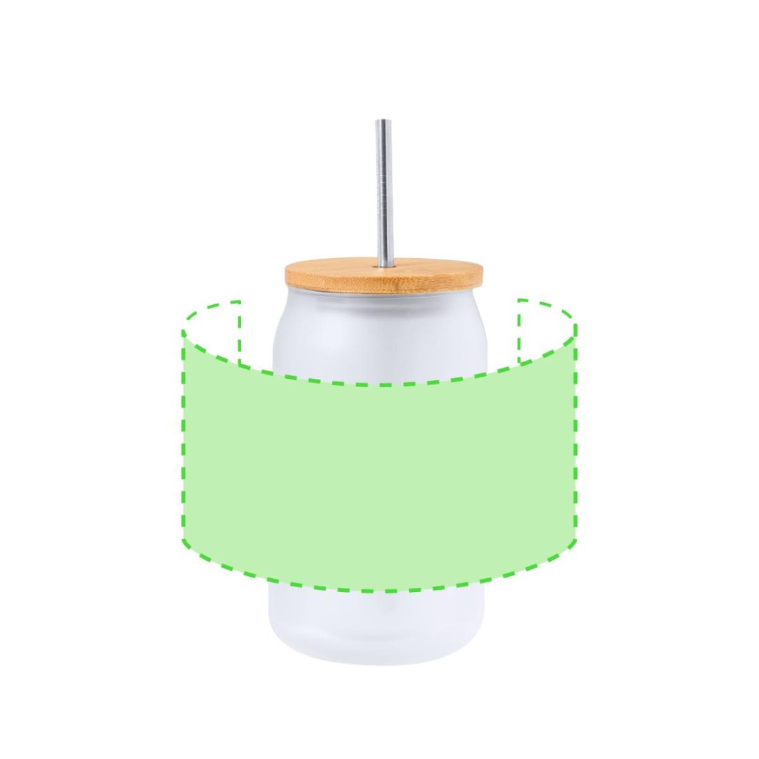 Tarro de sublimación con cuerpo fabricado en resistente cristal mate, con 400 ml de capacidad. Tapa en bambú a presión con orificio para pajita (pajita incluida y fabricada en acero inox). Especialmente diseñada para marcaje en sublimación. Presentada en caja individual kraft.