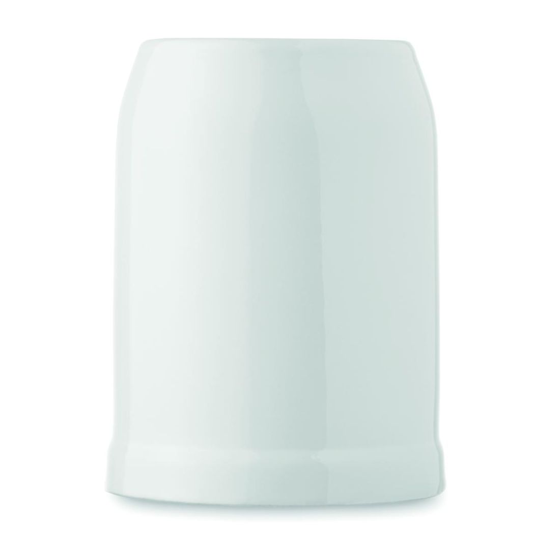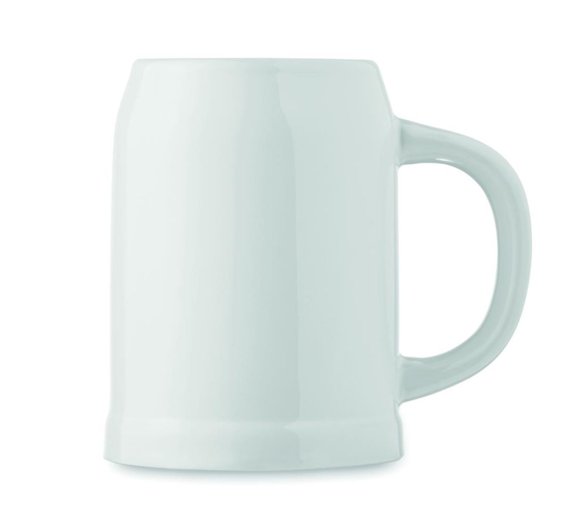 Taza con forma de jarra de cerveza de cerámica con revestimiento especial para sublimación. Capacidad: 500 ml.