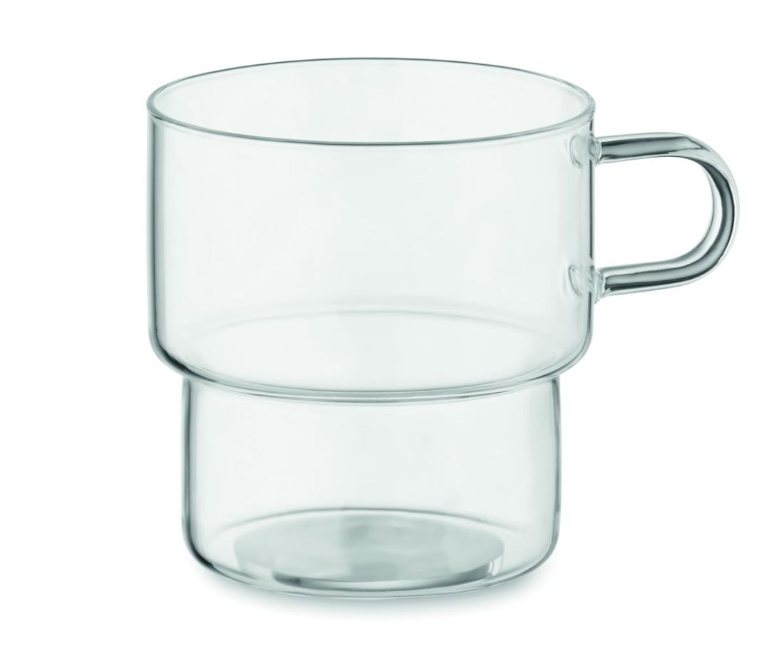 Taza apilable de cristal de borosilicato. Capacidad: 300 ml