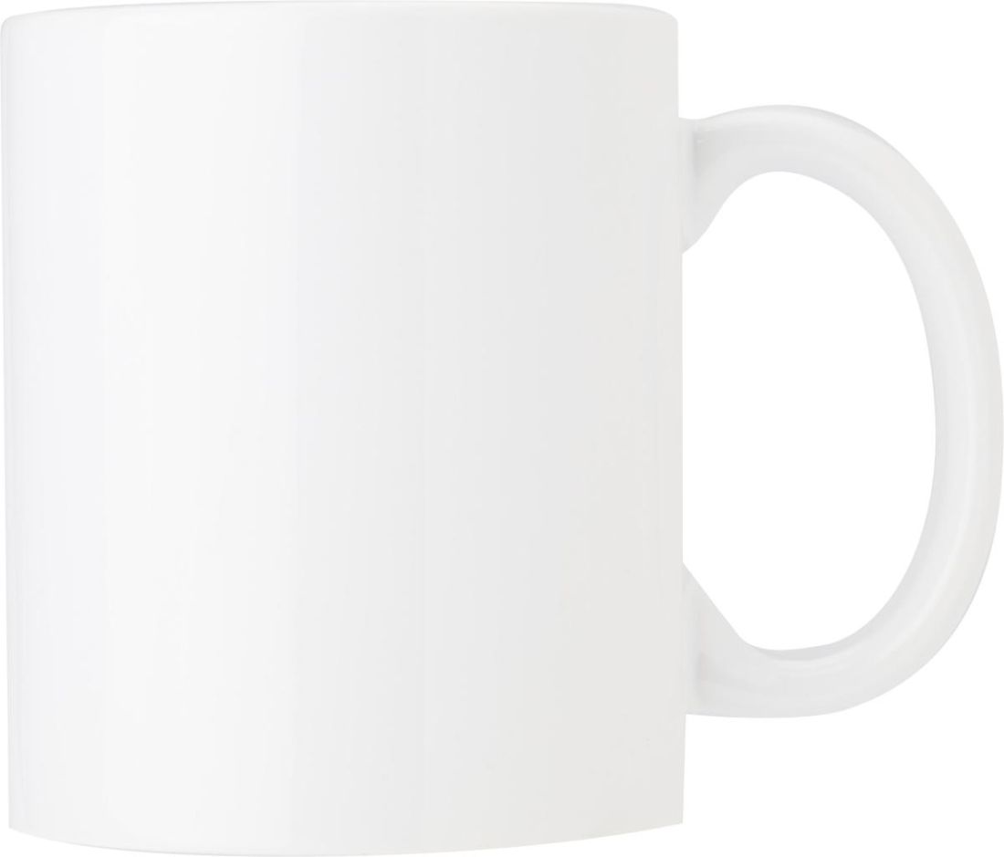 Taza (325 ml). Apta para la sublimación y para el lavavajillas. Venta en múltiplos de 12 unidades, precio por unidad. Cantidad mínima para imprimir 24 uds.