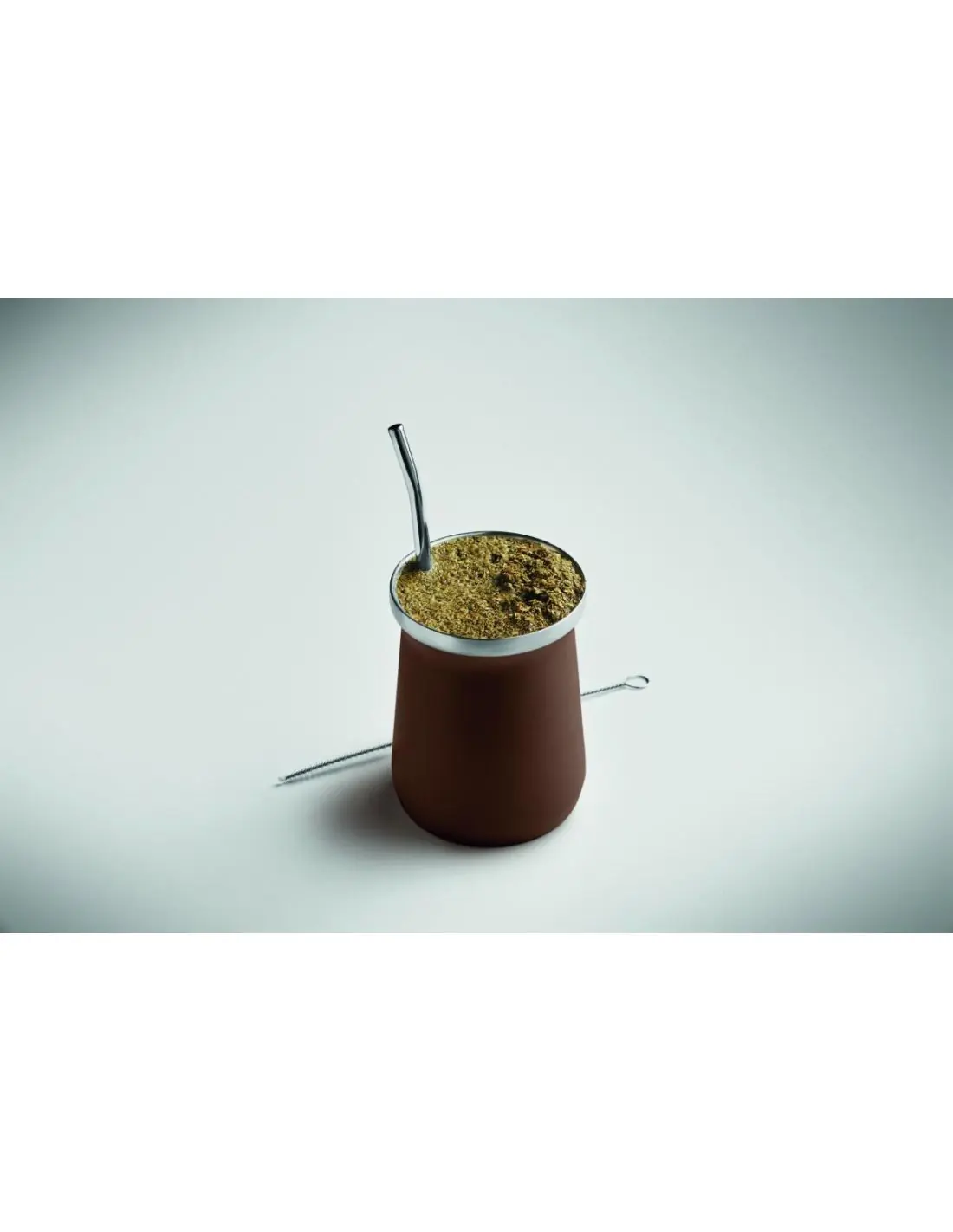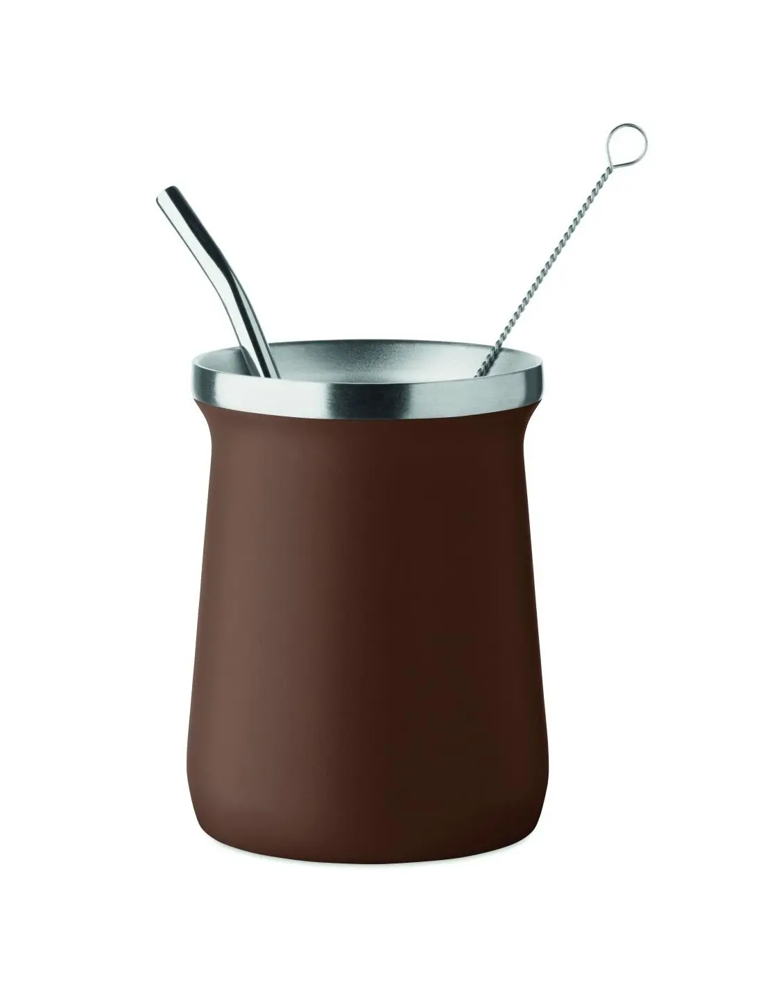 Vaso de yerba mate de doble pared de acero inoxidable reciclado (90% de acero inox.reciclado y 10% de acero inox). Incluye pajilla bombilla de acero inox. y cepillo de limpieza. Capacidad : 240 ml.