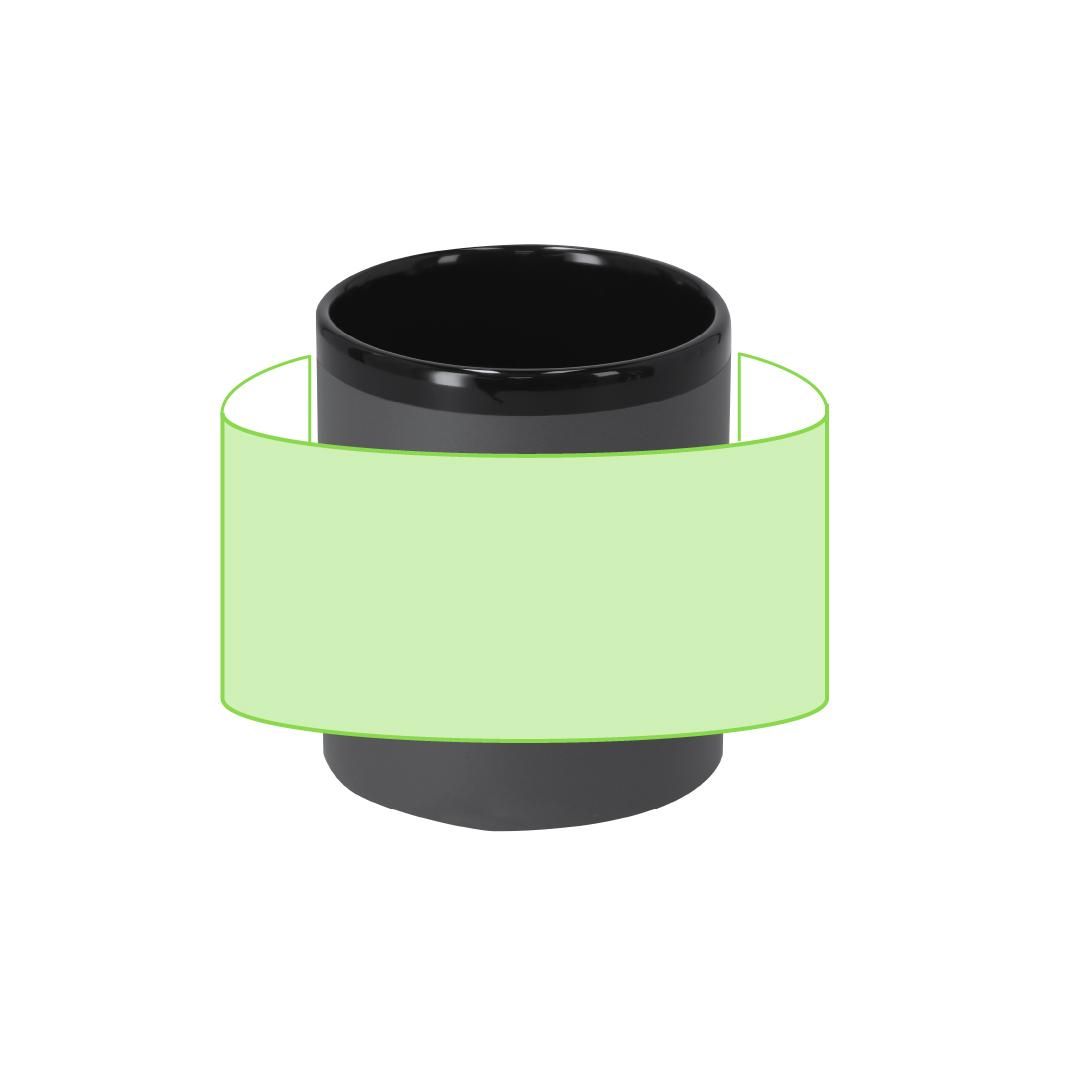 Taza de cerámica con 320 ml de capacidad. Distinguido diseño con interior en negro y exterior con acabado caucho en color, especial para marcaje láser.