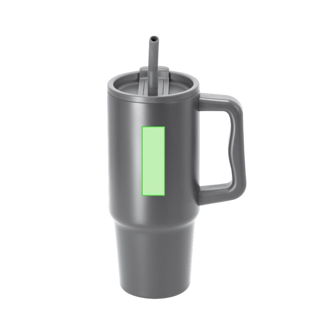 Taza térmica en Acero Inox Reciclado de doble pared y 900 ml de capacidad. Incluye tapadera con sistema de cierre a presión translúcido y con orificio para beber y tapa deslizante para pajita. Es ideal para tener en tu escritorio, mesa o en cualquier superficie donde disfrutar tranquilamente de tu bebida favorita. Incluye distintivo de Acero Inox Reciclado.