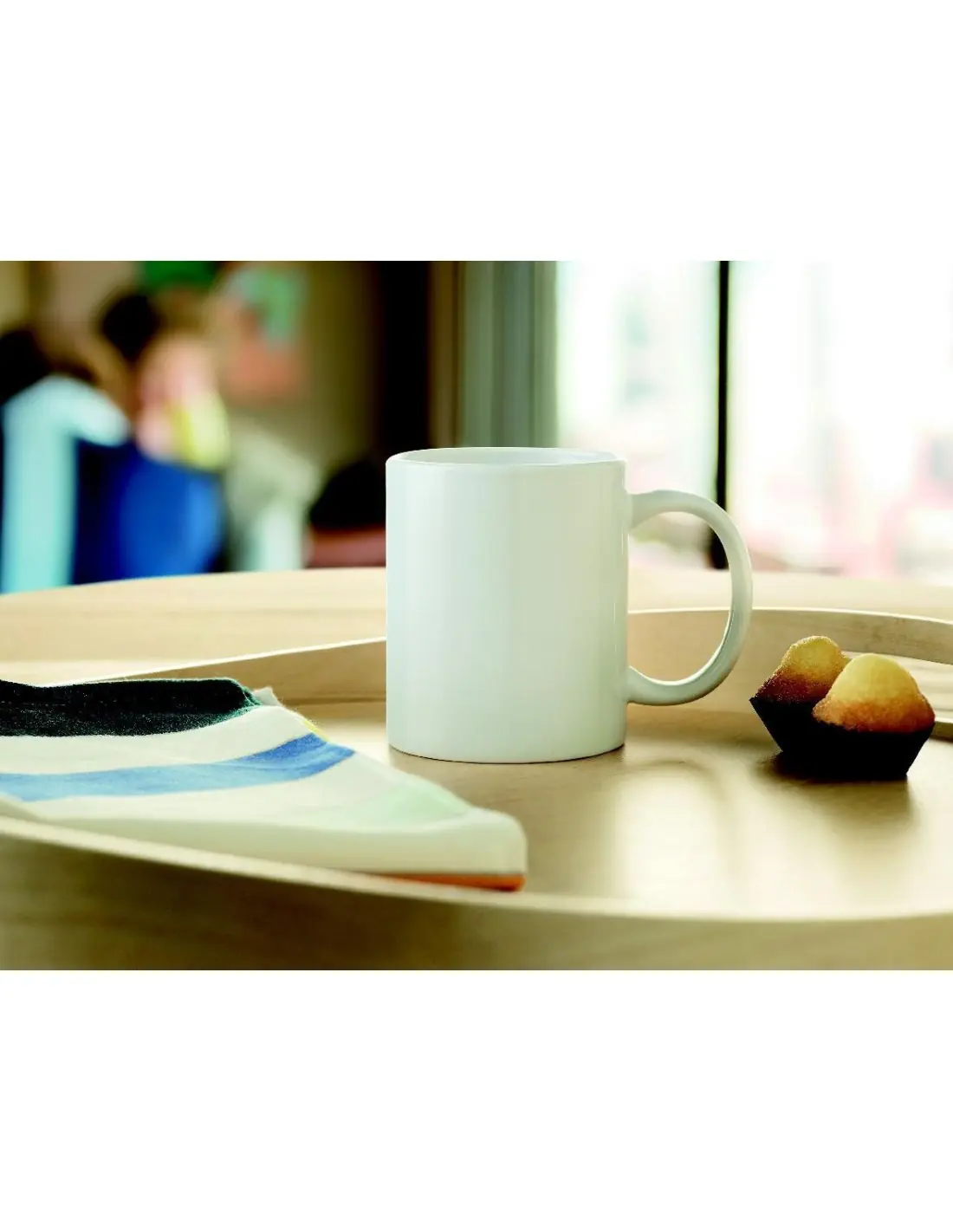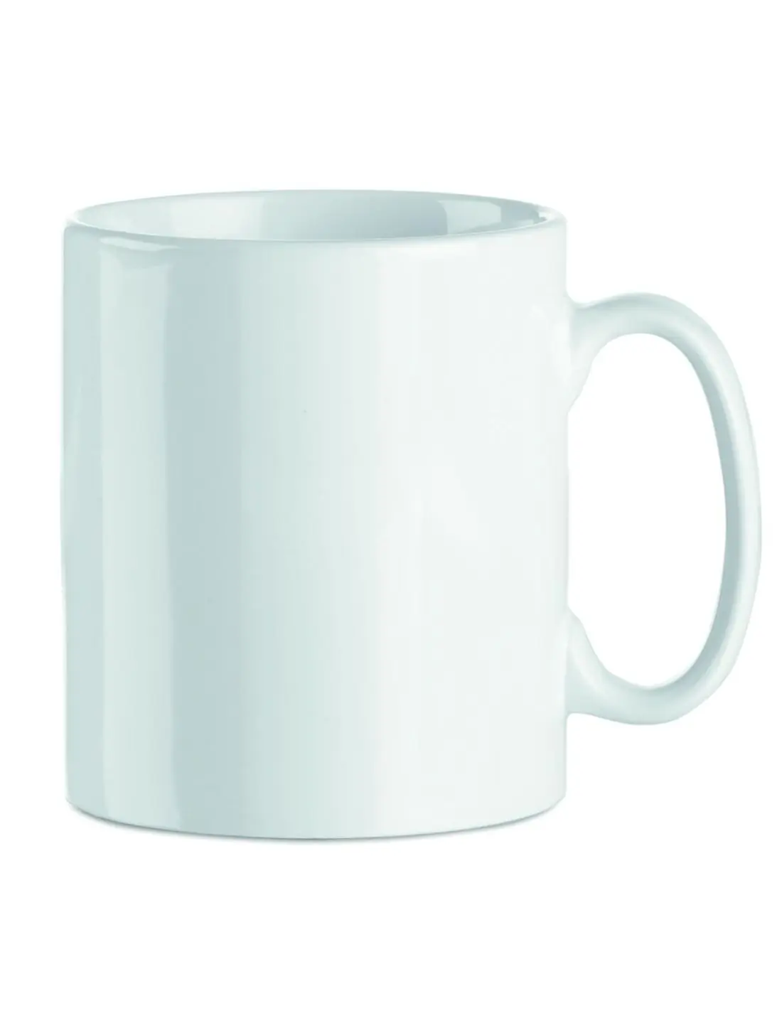 Taza de cerámica de 300 ml de capacidad con recubrimiento especial para sublimación. Embalaje individual en caja de cartón blanca.