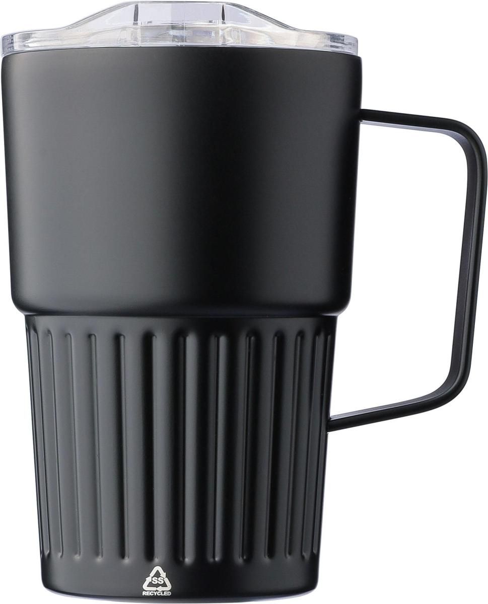 Taza termo de acero inoxidable reciclado (450 ml). Interior acero inoxidable 304 y exterior acero inoxidable 201 con asa acanalada y resistente. Ta…