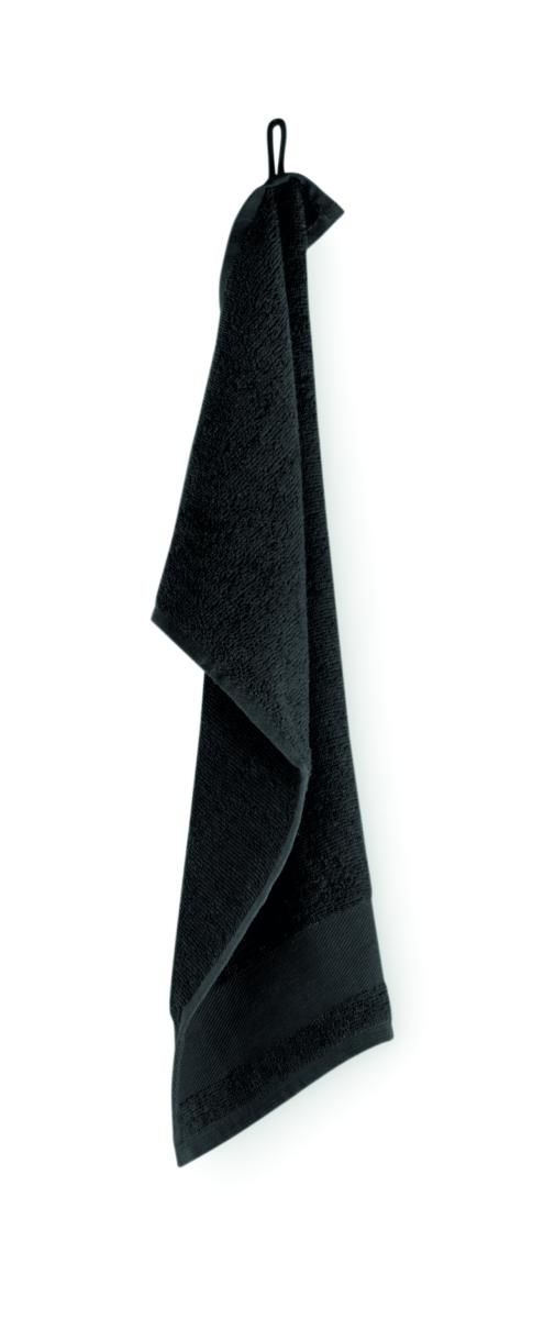 Toalla de rizo de algodón 100%, tejido de 380 gr/m² con lazo de algodón para colgar. Diseño suave y absorbente. Tamaño 30 cm x 50 cm.