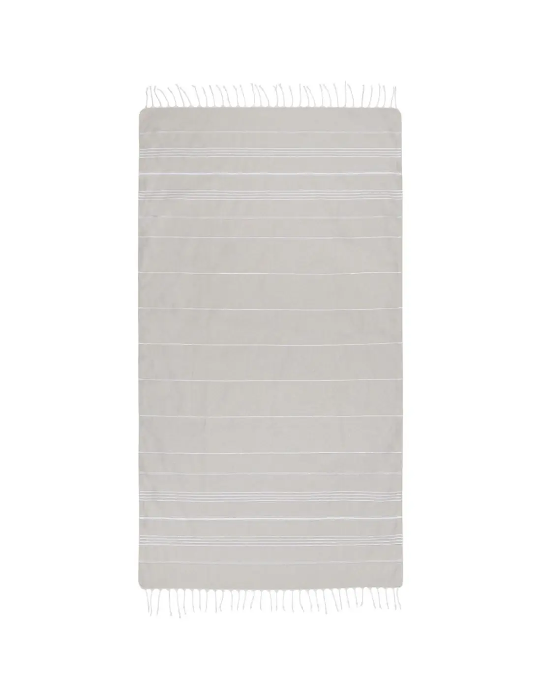 La toalla tipo hammam de algodón de 150 g/m² está confeccionada en algodón 100 %, es suave y absorbente y tiene múltiples usos. Se seca rápidamente y es ligera, lo que facilita su transporte. Certificado STANDARD 100 de OEKO-TEX®.