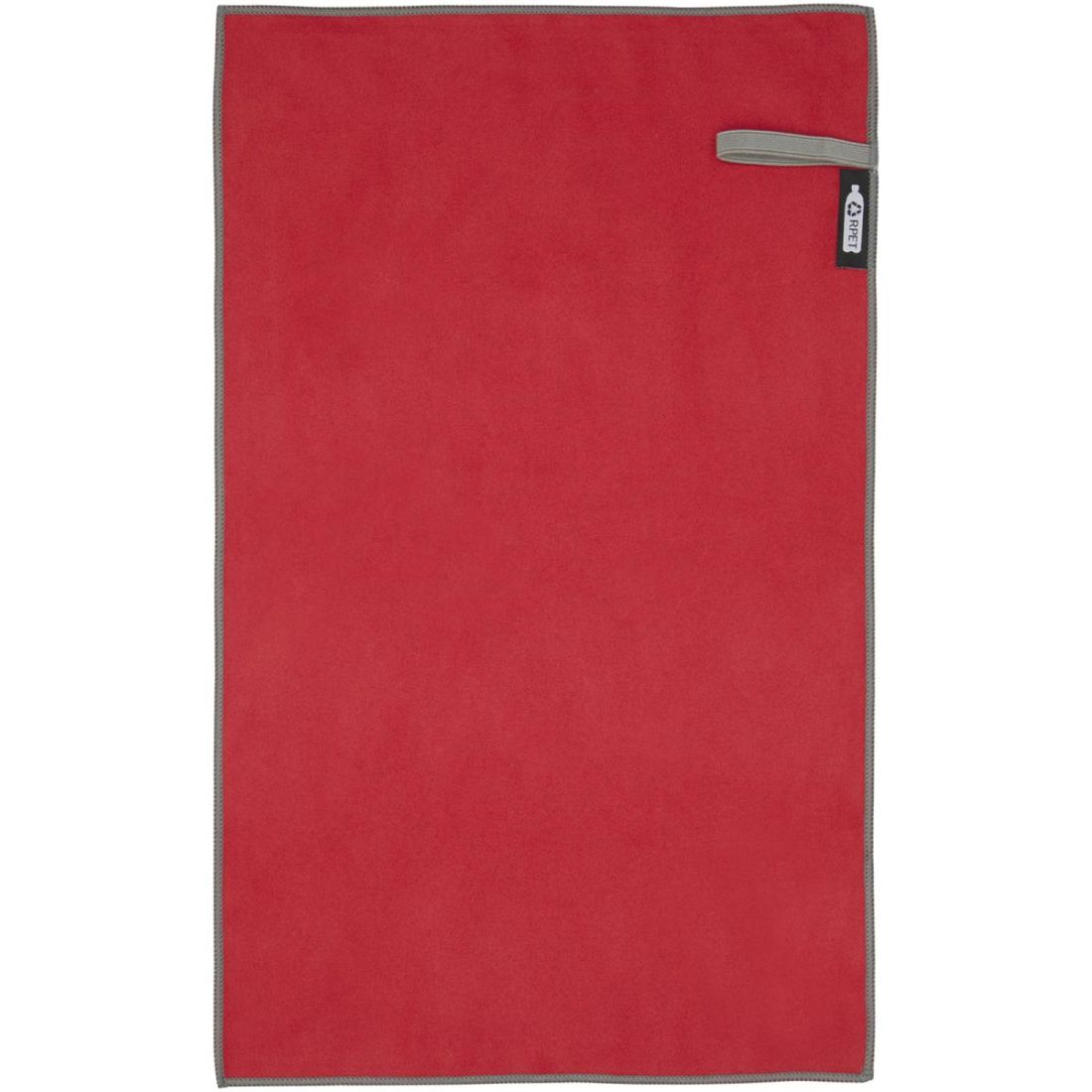La toalla deportiva absorbe muy bien, es ligera, se seca rápido y su tejido es duradero y extremadamente suave. Cuando la toalla está doblada y sujeta con la banda elástica, se reduce a un tamaño pequeño, por lo que es ideal para llevarla al gimnasio y a la piscina o para ir de mochilero o de acampada. La toalla tiene un tamaño de 50 × 30 cm y está fabricada con un 90 % de poliéster reciclado con certificación GRS y un 10 % de nylon, y puede lavarse en la lavadora a 40 °C. Se entrega con una bolsa de almacenamiento (15,5 × 10 cm) fabricada con plástico PET reciclado, con una gran superficie para imprimir un logotipo.