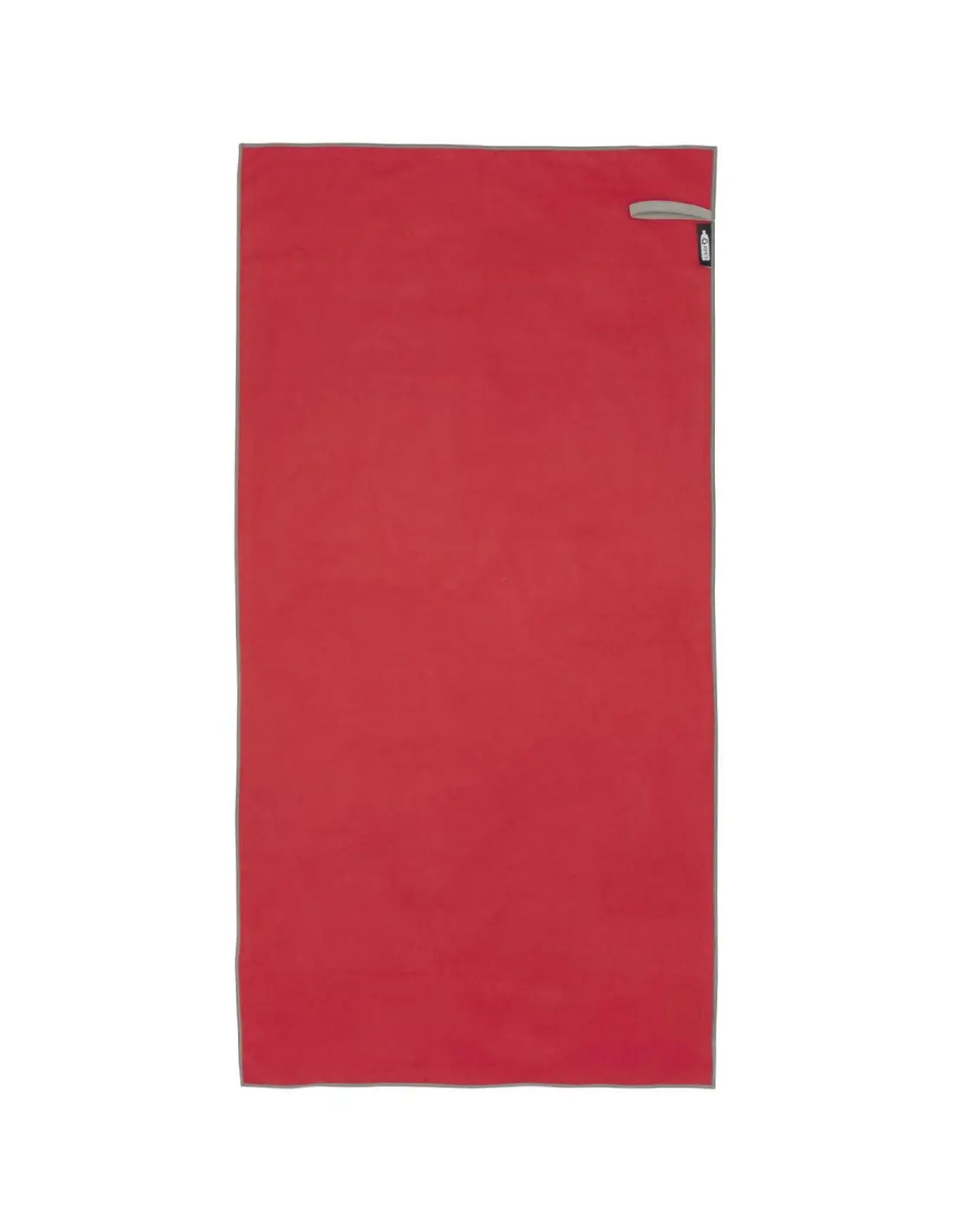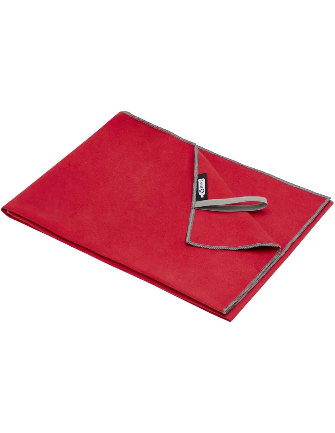 La toalla deportiva absorbe muy bien, es ligera, se seca rápido y su tejido es duradero y extremadamente suave. Cuando la toalla está doblada y sujeta con la banda elástica, se reduce a un tamaño pequeño, por lo que es ideal para llevarla al gimnasio y a la piscina o para ir de mochilero o de acampada. La toalla tiene un tamaño de 50 × 100 cm y está fabricada con un 90 % de poliéster reciclado con certificación GRS y un 10 % de nylon, y puede lavarse en la lavadora a 40 °C. Se entrega con una bolsa de almacenamiento (17 × 13 cm) fabricada con plástico PET reciclado, con una gran superficie para imprimir un logotipo.