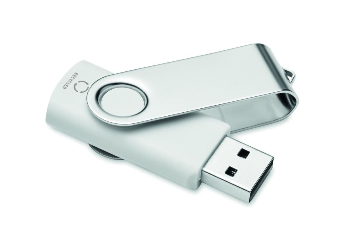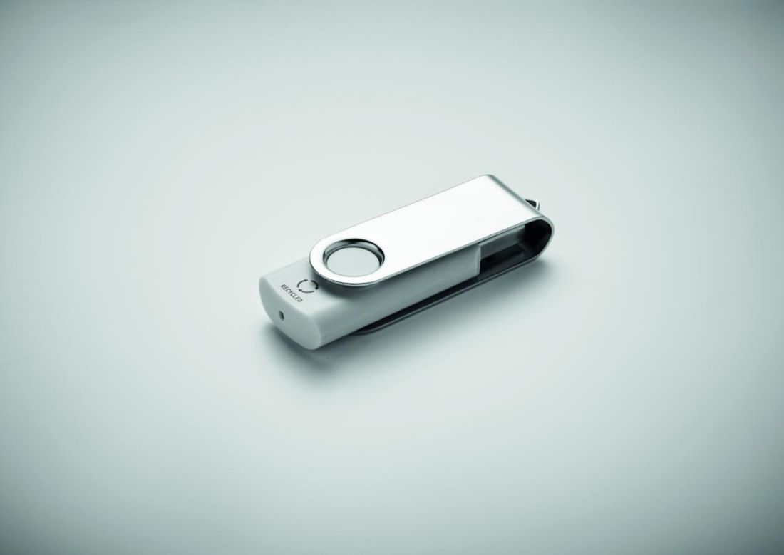 Memoria USB 2.0 de 16 GB con cubierta protectora de ABS reciclado en acabado blanco. Gira la tapa y conéctala al puerto USB para empezar a usarla.
