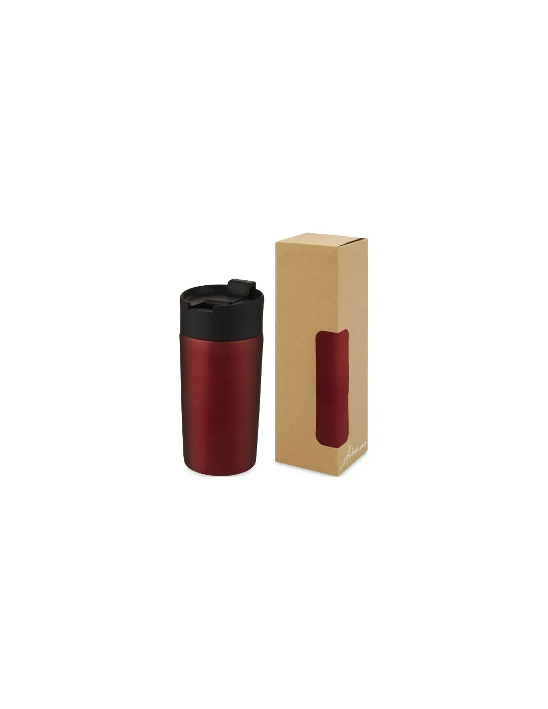 Vaso de cobre con aislamiento al vacío de doble pared y tapa que puede manejarse con una sola mano para beber con facilidad al conducir o hacer varias cosas a la vez. El acero inoxidable 18/8 con aislamiento mantiene las bebidas calientes o frías durante varias horas. No contiene BPA y se ha probado y homologado según la legislación alemana sobre seguridad alimentaria (LFGB), y se ha comprobado el contenido de ftalatos según la normativa REACH. El vaso se adapta a la mayoría de las máquinas de café y los portavasos de coche. Capacidad de 330 ml. Se recomienda lavarla a mano. Se presenta en una caja de regalo de cartón reciclado.