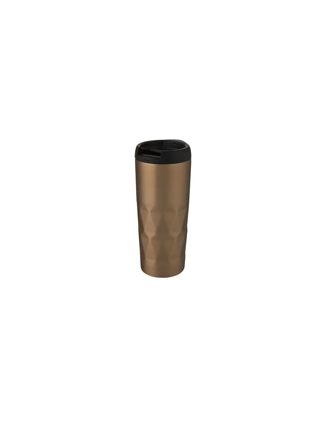 Vaso con aislamiento al vacío de cobre de doble pared con tapa de rosca a prueba de fugas y diseño geométrico intrincado. El acero inoxidable 18/8 con aislamiento mantiene las bebidas calientes o frías durante varias horas. No contiene BPA y se ha probado y homologado según la legislación alemana sobre seguridad alimentaria (LFGB), y se ha comprobado el contenido de ftalatos según la normativa REACH. Capacidad de 450 ml. Se recomienda lavarla a mano. Se presenta en una caja de regalo de cartón reciclado.