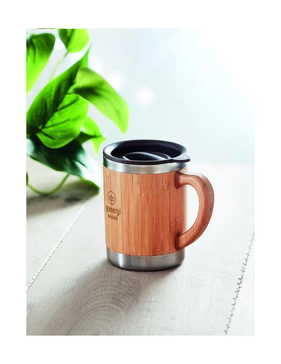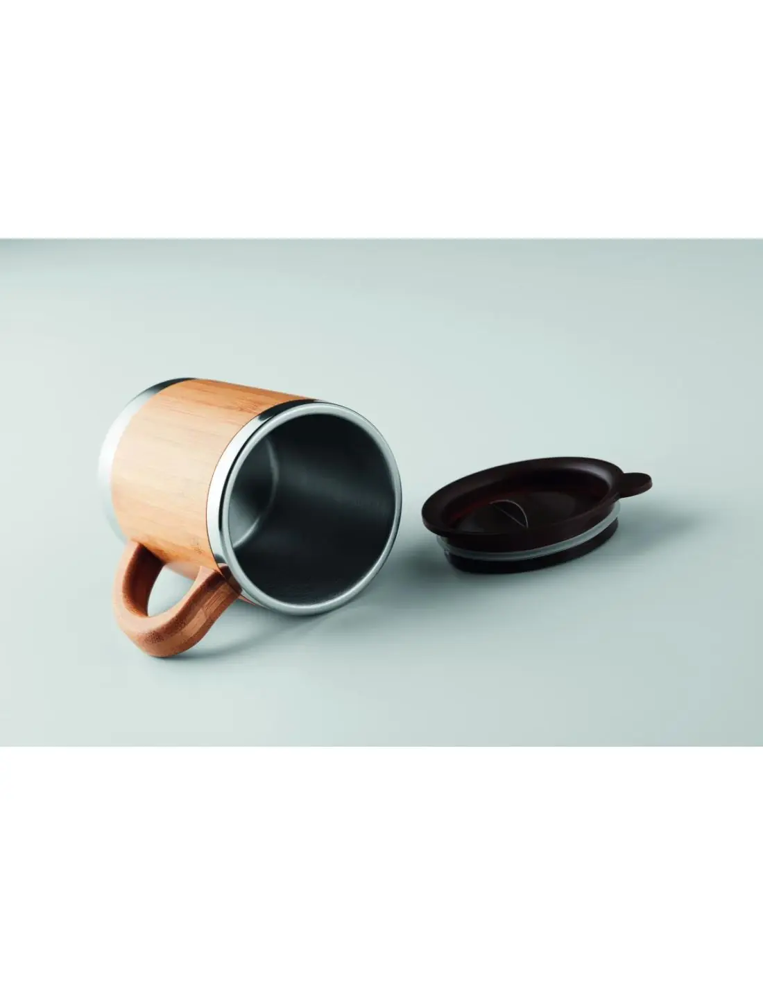 Taza de acero inoxidable de doble capa con carcasa de bambú. Capacidad 300 ml. El bambú es material natural, el color del articulo puede variar.