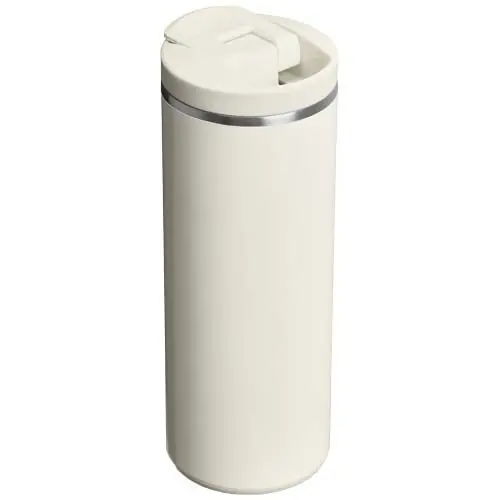 El vaso Transit Fliptop de 350 ml, de acero inoxidable reciclado de doble pared con aislamiento al vacío, está fabricado con una tecnología que lo hace un 33 % más ligero que el acero inoxidable estándar. El aislamiento de acero hilado ultraligero mantiene las bebidas calientes durante 4 horas o frías durante 6 horas. El vaso es hermético y tiene una silicona a juego en la lengüeta de la tapa y la base, lo que hace que abrirlo, cerrarlo y apoyarlo sea más silencioso. Apto para el lavavajillas y compatible con la mayoría de los portavasos de los coches.