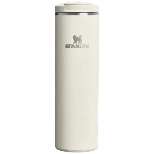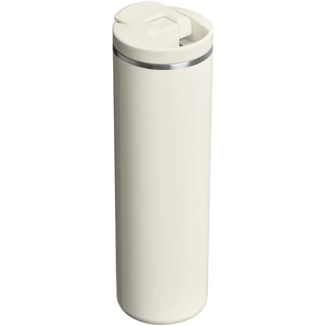 El vaso Transit Fliptop de 470 ml, de acero inoxidable reciclado de doble pared con aislamiento al vacío, está fabricado con una tecnología que lo hace un 33 % más ligero que el acero inoxidable estándar. El aislamiento de acero hilado ultraligero mantiene las bebidas calientes durante 4 horas o frías durante 6 horas. El vaso es hermético y tiene una silicona a juego en la lengüeta de la tapa y la base, lo que hace que abrirlo, cerrarlo y apoyarlo sea más silencioso. Apto para el lavavajillas y compatible con la mayoría de los portavasos de los coches.