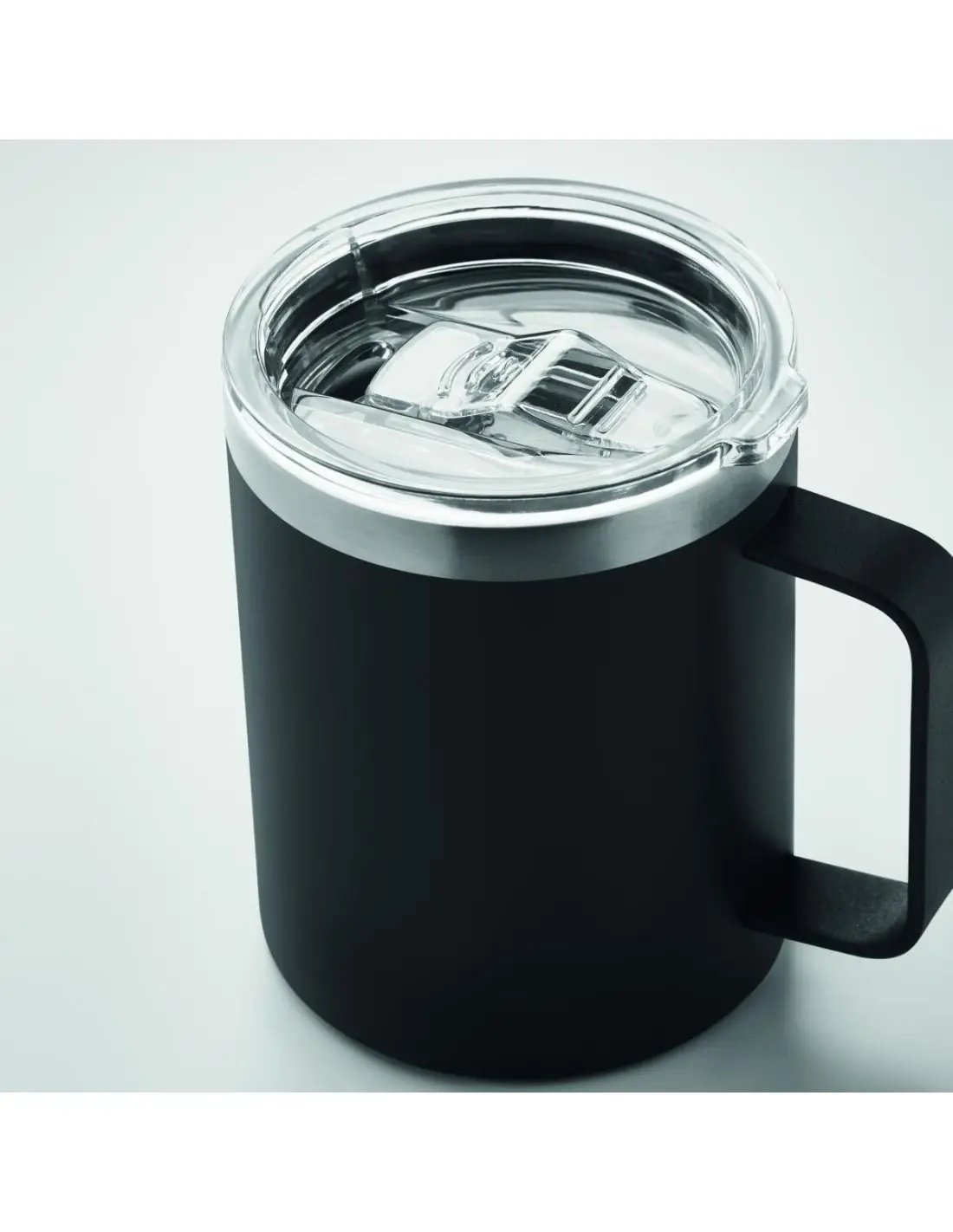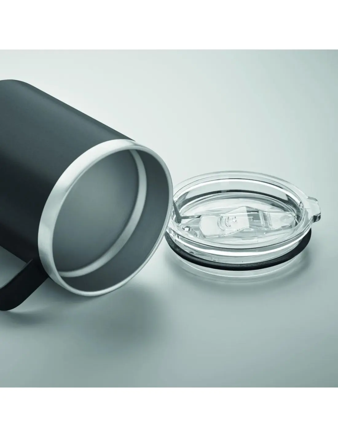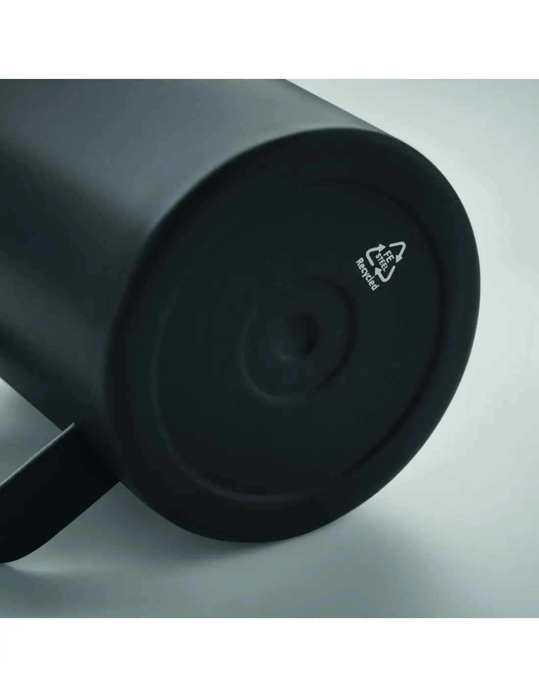 Vaso de acero inoxidable reciclado de doble pared (90% de acero inoxidable reciclado y 10% de acero inoxidable) con tapa y orificio deslizante para beber. Capacidad: 300 ml.