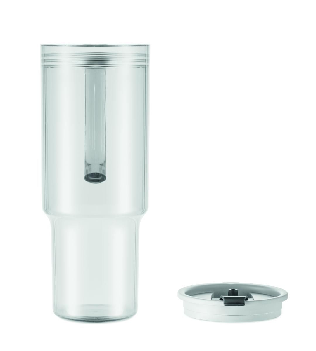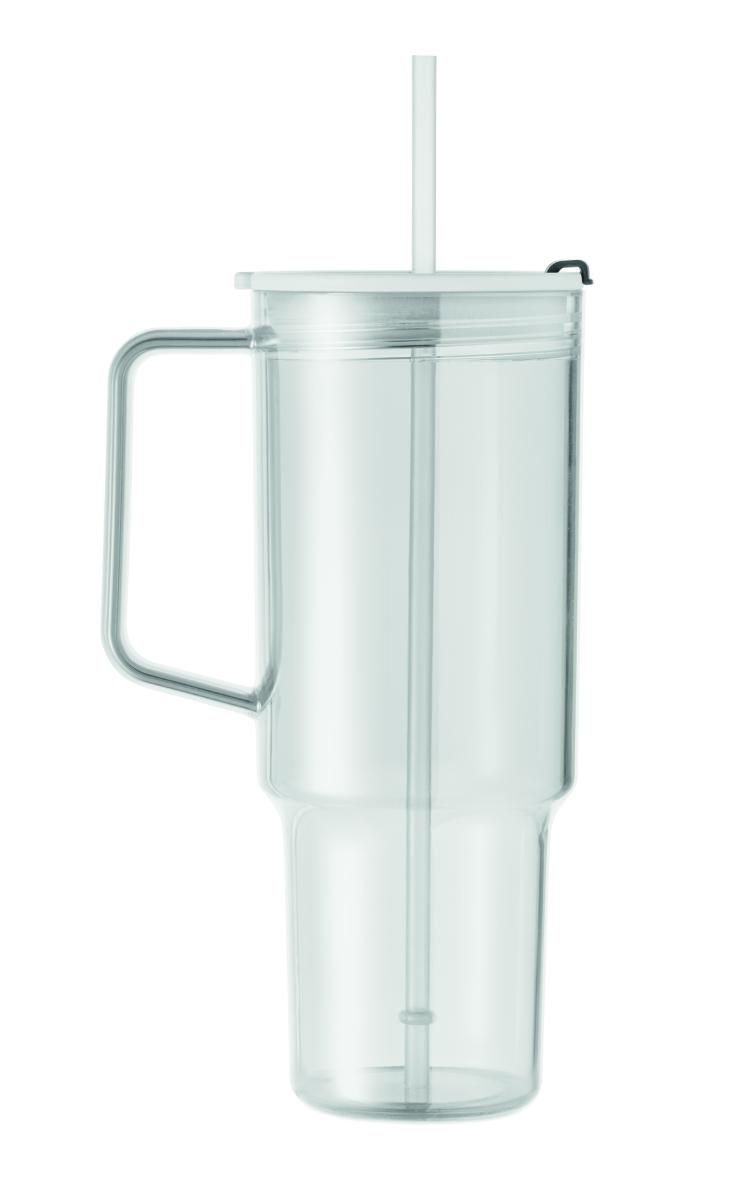 Vaso de RPET con tapa de pajita que incluye pajita de PP. Capacidad: 1200 ml.