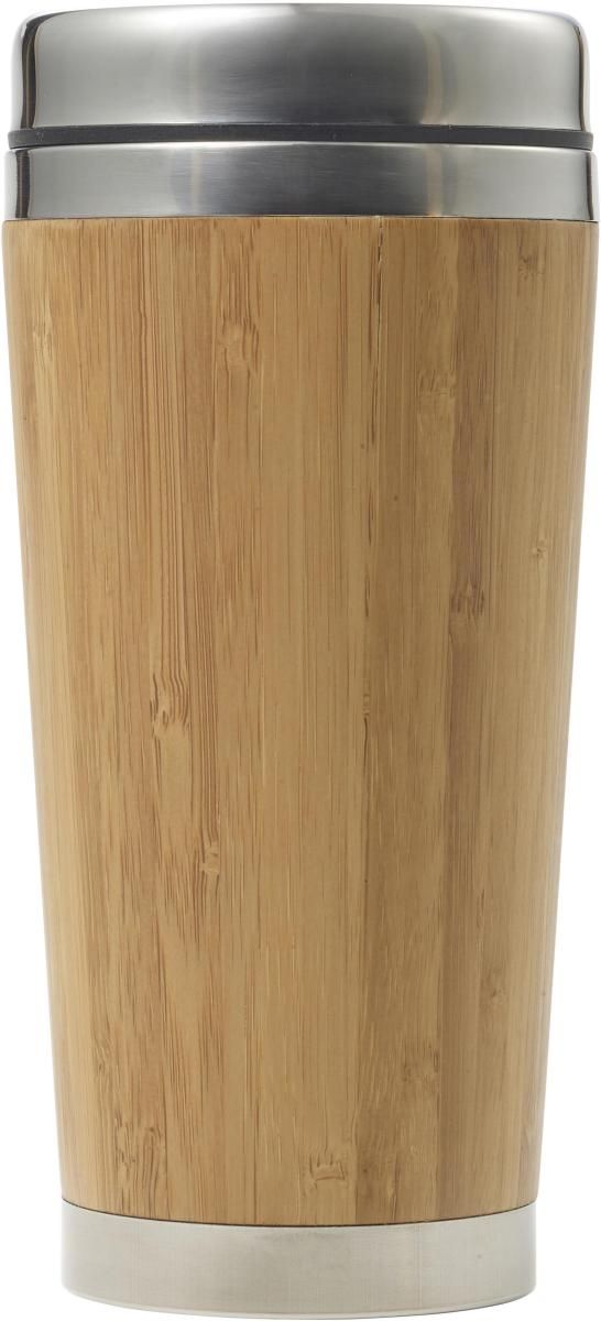 Vaso termo de bambú y acero inoxidable 304 (400 ml) de doble pared y con tapa de PP. Evitar bebidas ácidas o con gas.