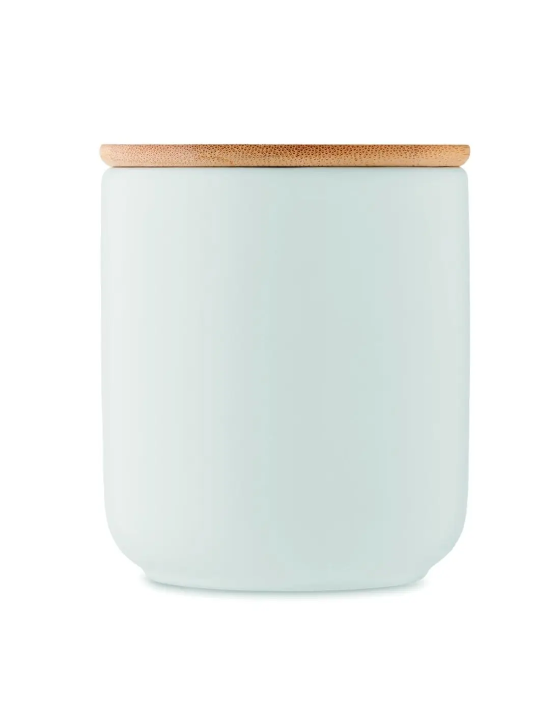 Vela de cera vegetal con fragancia de lino fresco en tarro de gres con tapa de bambú. 200 gr. Tiempo de combustión: 36 horas. El bambú es un materi…