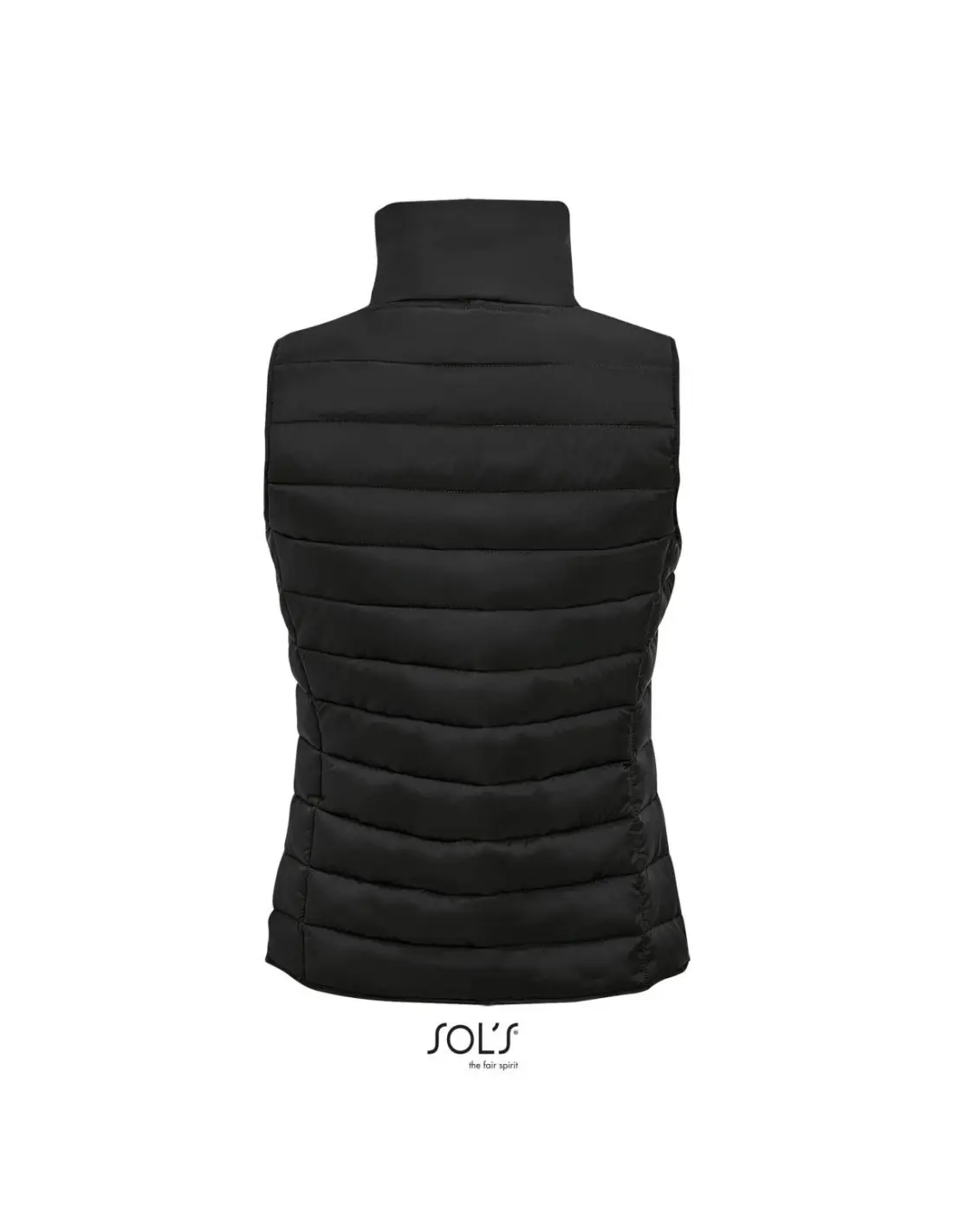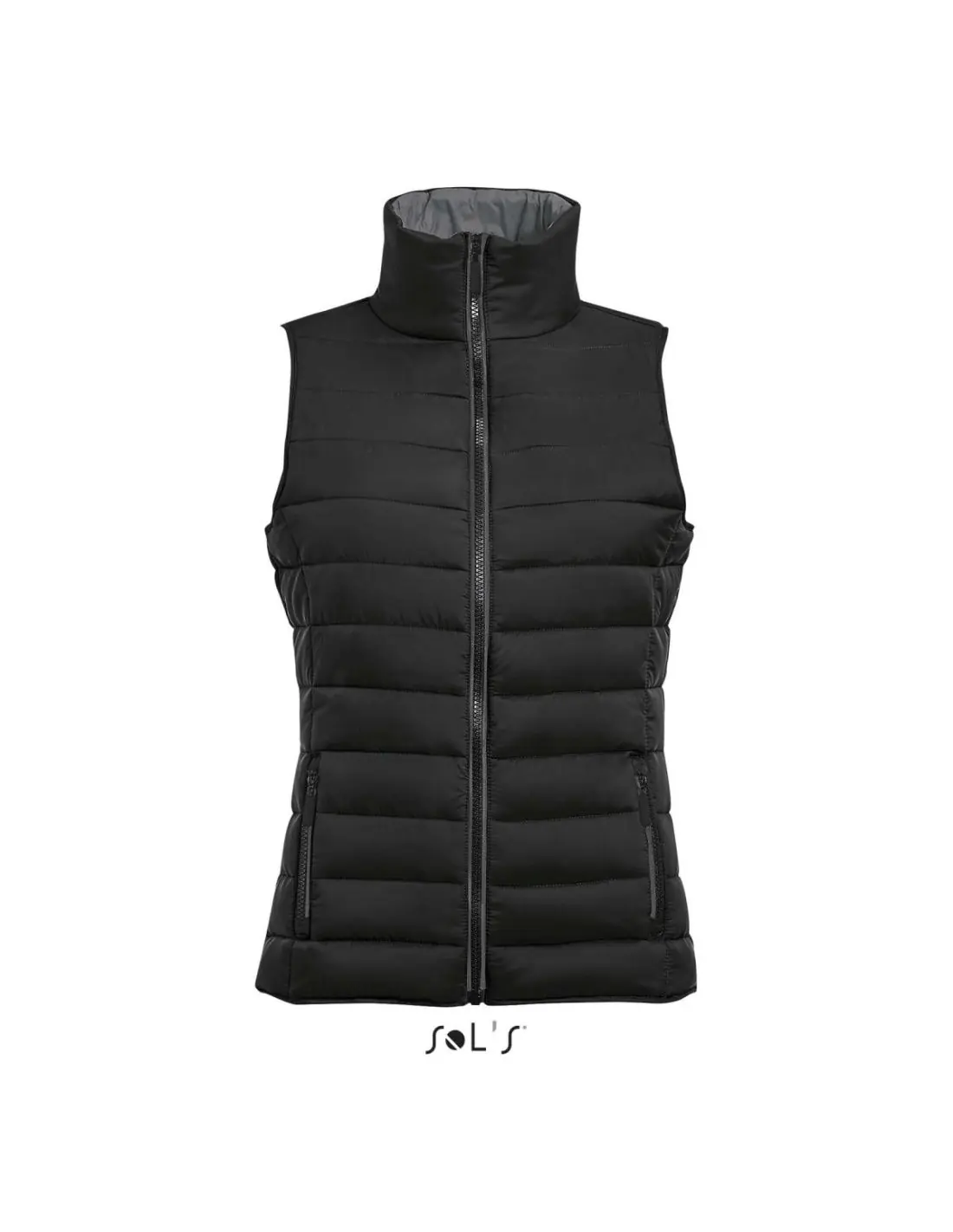 SOL'S WAVE Chaleco Mujer 180g/m². Gemelo de la chaqueta acolchada Ride en versión sin mangas, para ofrecer una mayor libertad de movimiento o para llevar como capa adicional encima de nuestra chaqueta, forro: 100% nylon, relleno: 100% poliéster - 180 g/m2, 2 bolsillos con una elegante cremallera a juego con el forro, cuello alto, de corte ajustado, acabado tono sobre tono en la parte inferior.